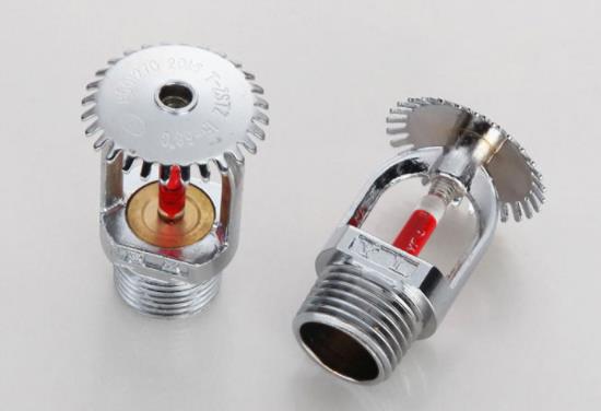 閉式噴頭是一種直接噴水滅火的組件,是帶熱敏感元件及其密封組件的自動(dòng)噴頭。該熱敏感元件可在預(yù)定溫度范圍下動(dòng)作,使熱敏感元件及其密封組件脫離噴頭主體,并按規(guī)定的形狀和水量在規(guī)定的保護(hù)面積內(nèi)噴水滅火,它的性能好壞直接關(guān)系著系統(tǒng)的啟動(dòng)和滅火、控火效果。此種噴頭按熱敏感元件劃分,可分為玻璃球噴頭和易熔元件噴頭兩種類型;按安裝形式、布水形狀又分為直立型、下垂型、邊墻型、吊頂型和干式下垂型等。