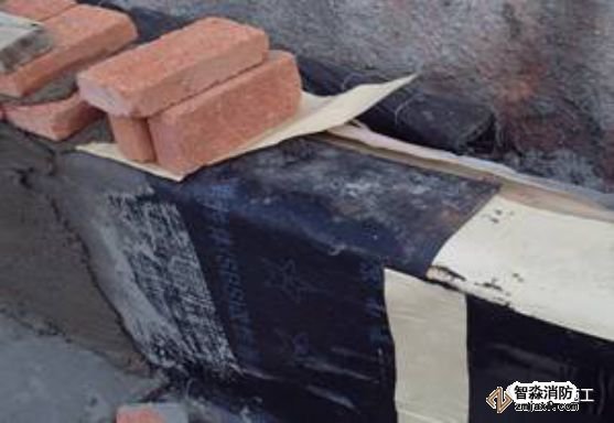 在進(jìn)行大面積防水卷材鋪貼前,應(yīng)先穿好帶有止水環(huán)的設(shè)備管道(止水環(huán)外徑比套管內(nèi)徑小4mm),并固定好,設(shè)備管道與套管之間的縫隙先填塞瀝青麻絲,再填塞聚硫密封膏 ,將防水卷材收口嵌入設(shè)備管道與套管之間的縫隙,再用聚硫密封膏灌實(shí),最后做一層矩形加強(qiáng)層防水卷材。穿墻管與內(nèi)墻角凹凸部位的距離應(yīng)大于250mm,管與管的間距應(yīng)大于300mm。
