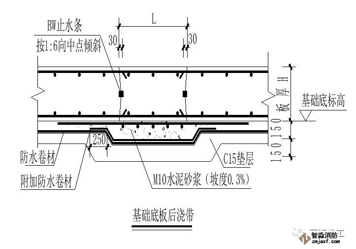 后澆帶增加一道4mm厚-20度SBS防水卷材。