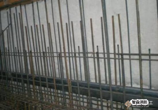 2、在澆筑混凝土?xí)r,在施工縫部位埋植30㎜×10㎜木條,沿墻厚居中留置出寬30 ㎜、深10 ㎜通長(zhǎng)凹槽,混凝土接縫前將止水條放入凹槽內(nèi),用水泥釘固定。遇水膨脹止水條應(yīng)具有緩脹性能,7d膨脹率不應(yīng)大于低膨脹率的60%。