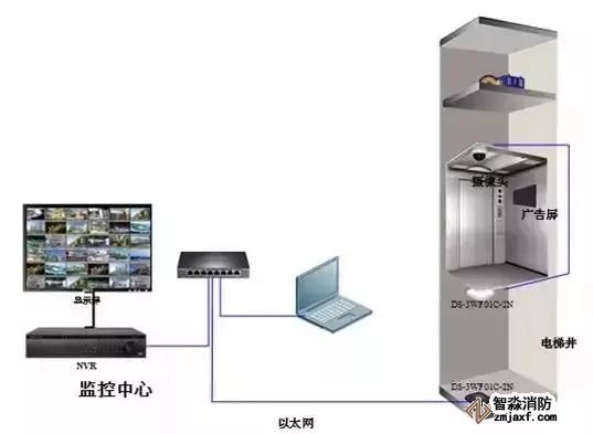 1、攝像機(jī)端安裝在轎廂上部,正面朝上,使用扎帶固定在轎廂上。