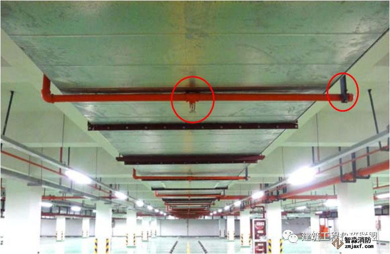 2當噴淋支管高度大于1000mm時,應設橫向加強支架;末端支架與噴頭之間的距離為400mm