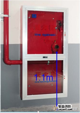 消火栓不在門軸側(cè),應在開啟側(cè);消火栓口中心離地高度為1.1 米,允許偏差±10mm
