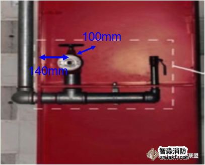 閥門中心距箱側(cè)面料140mm,距箱后內(nèi)表面為100mm,允許偏差±5mm;消火栓箱體安裝的垂直度偏差≤3mm