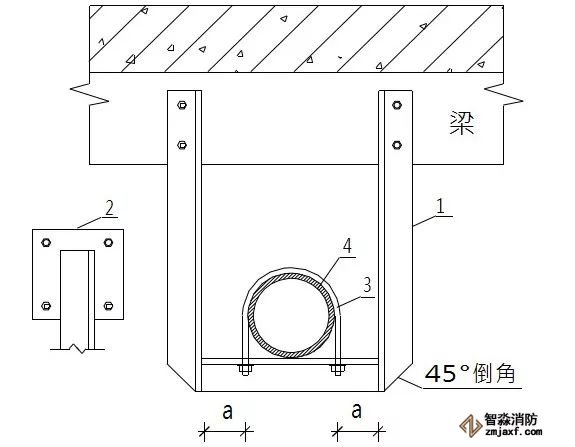 1.角鋼  2.連接板(8mm)  3.管碼  4.管道