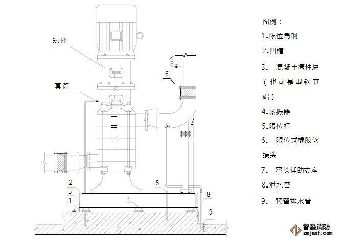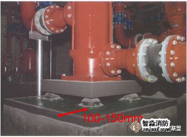 2立式水泵不得采用彈簧減震器;大型立式水泵最好采用穩(wěn)定性好的橡膠減震墊;多臺立式泵可采取組合機組安裝,增加水泵的整體穩(wěn)定性