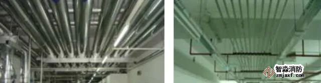 各種機(jī)房,如空調(diào)機(jī)、水泵房、鍋爐房、配電房、智能化控制用房等,是最能體現(xiàn)工藝水平的部位。各種管線、設(shè)備布置是否合理有序,直接影響設(shè)備運(yùn)行,設(shè)備功能正常發(fā)揮,安裝工藝水平、觀感效果。另外與土建結(jié)構(gòu)、裝飾必須共同配合,共同策劃,多種支吊架設(shè)置的安全性、合理性,工藝管線走向的美觀、合理性,千萬不要出現(xiàn)為就美觀而影響功能。要考慮設(shè)備的標(biāo)高方位與管線布置相互配合,既滿足功能要求,又滿足美觀要求,兩者兼顧,不要顧此失彼。各種油漆、保溫層、涂料的顏色,各種管線設(shè)備的顏色、標(biāo)識(shí)、無疑也將給觀感效果帶來極大的影響,也必須注意策劃。