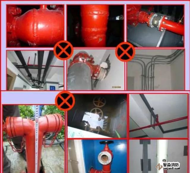 (2)自動(dòng)噴水滅火系統(tǒng)管道倒坡現(xiàn)象較普遍,尤其是配水管的配水支管。管道的坡度應(yīng)坡向泄水裝置或輔助排水管,并應(yīng)注意按規(guī)范要求設(shè)置防晃吊架。(見《GB50084-2001(2005修訂)-自動(dòng)噴水滅火系統(tǒng)設(shè)計(jì)規(guī)范》;《自動(dòng)噴水滅火系統(tǒng)施工及驗(yàn)收規(guī)范》GB50261-2005)。由于管道倒坡使管內(nèi)水排不出,當(dāng)清洗或更換噴頭時(shí),易產(chǎn)生污染,極個(gè)別的采暖回水管道也有倒坡的,影響采暖效果。
