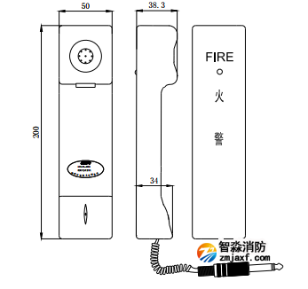 手提式電話分機(jī)為:200mm×50mm×38.3mm