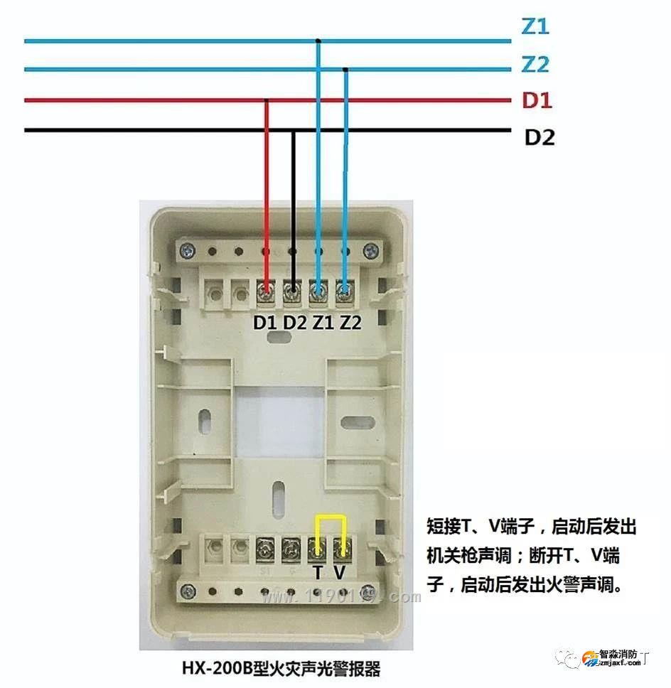 11、HX-200B聲光警報器接線方法: