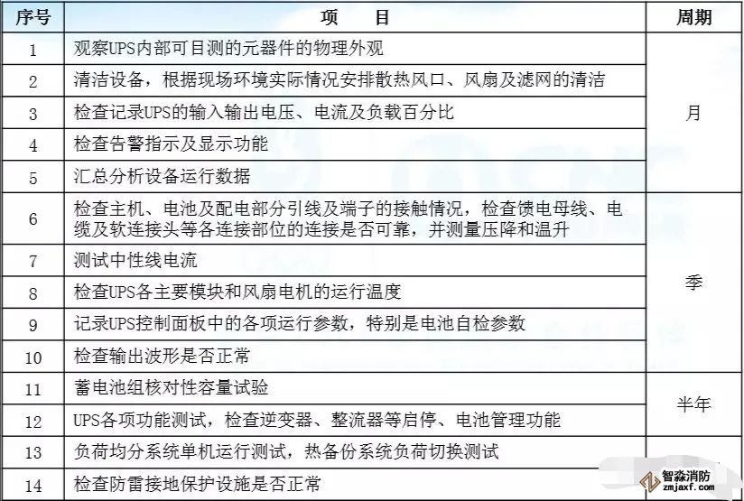 二、UPS維護(hù)項(xiàng)目及周期表