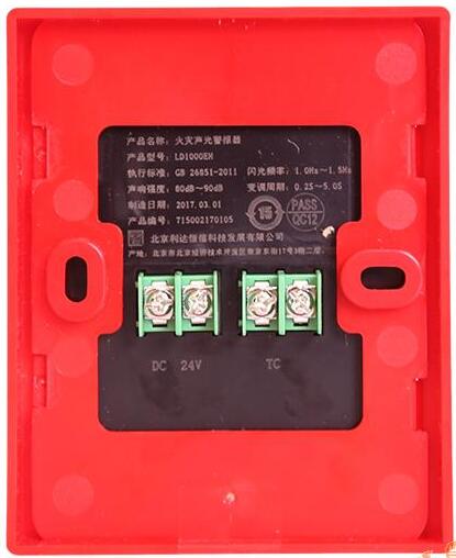 LD1000EH(F)為非編碼型火災(zāi)聲光警報(bào)器,二線制,接通DC 24V 電源即可啟動(dòng)聲光警報(bào)。可與本公司生產(chǎn)LD6800EC-1 或LD6800EC-2 輸出模塊配接使用,當(dāng)輸出模塊提供DC 24V 電源后, LD1000EH(F)火災(zāi)聲光警報(bào)器直接發(fā)出白色閃光和火警聲。