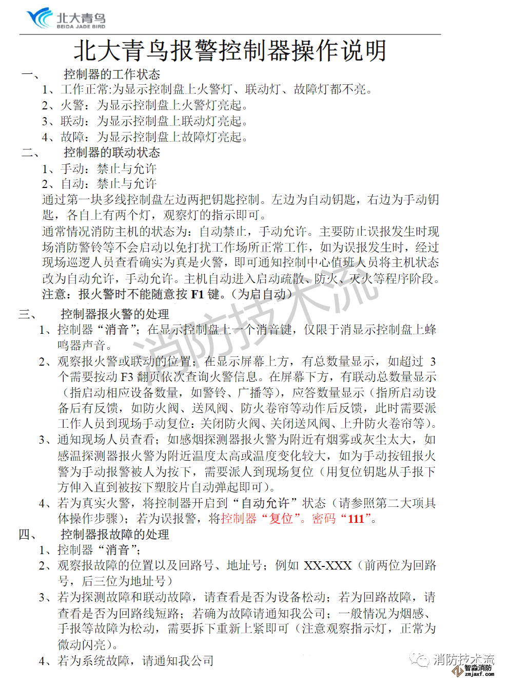 北大青鳥火災(zāi)報(bào)警控制器操作說明