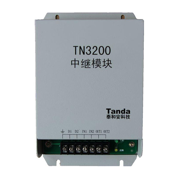 產(chǎn)品簡介:泰和安TN3200中繼模塊消防電話中繼器主要接口 1.D1、D2:DC24V直流輸入端子; 2.IN1、IN2:無極性電話線輸入端子; 3.OUT1、OUT2:無極性電話線輸出端子。 泰和安TN3200中繼模塊消防電話中繼