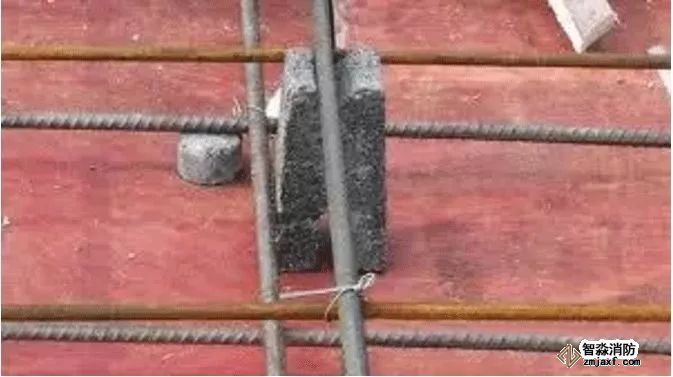 2.1 梁底、板底:采用普通砂漿墊塊;缺點(diǎn):容易踩踏鋼筋,使得水泥墊塊碎裂。