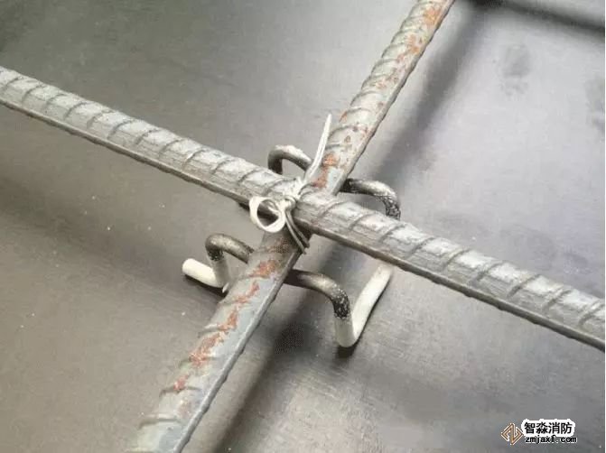 ▲采用塑膠圓狀墊片,并顏色區(qū)分保護(hù)層厚度,現(xiàn)場一目了然
