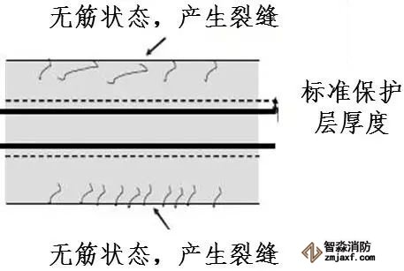 2、保護(hù)層過大,使得混凝土處于無筋狀態(tài),產(chǎn)生裂縫。