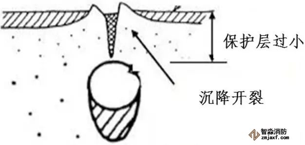 1、保護(hù)層過小,易造成樓板下沉開裂,以及混凝土中的堿性反應(yīng)提前使得鋼筋氧化、生銹膨脹,造成混凝土爆裂。