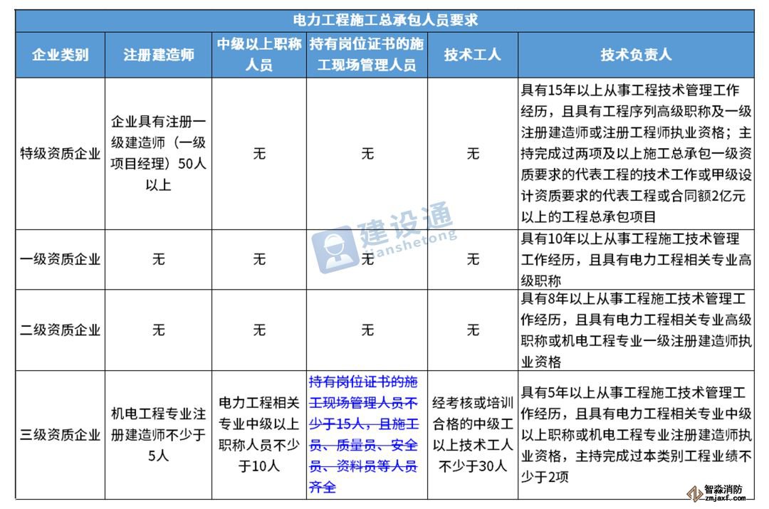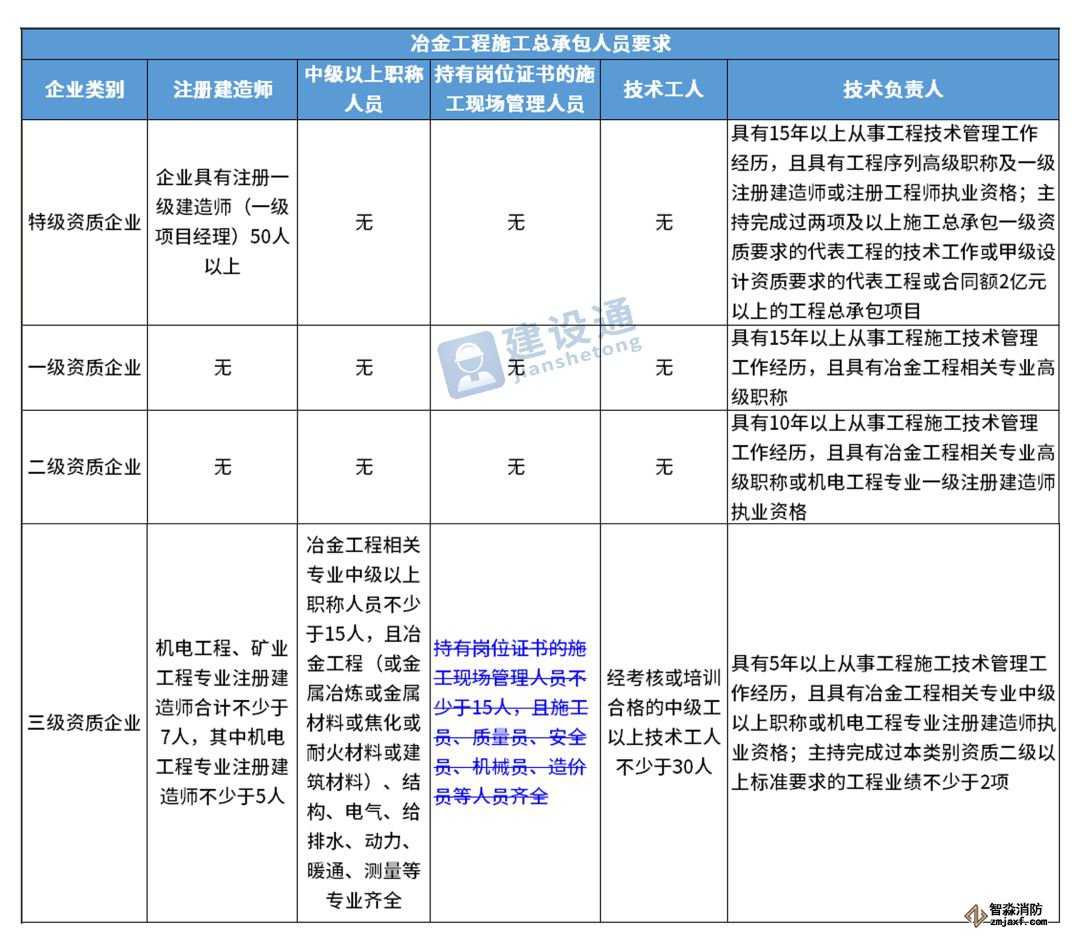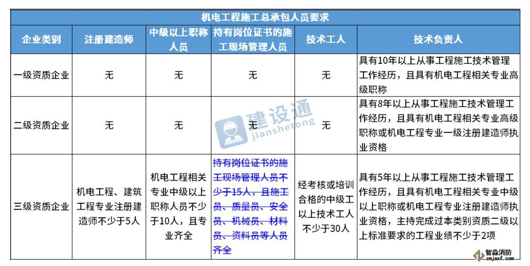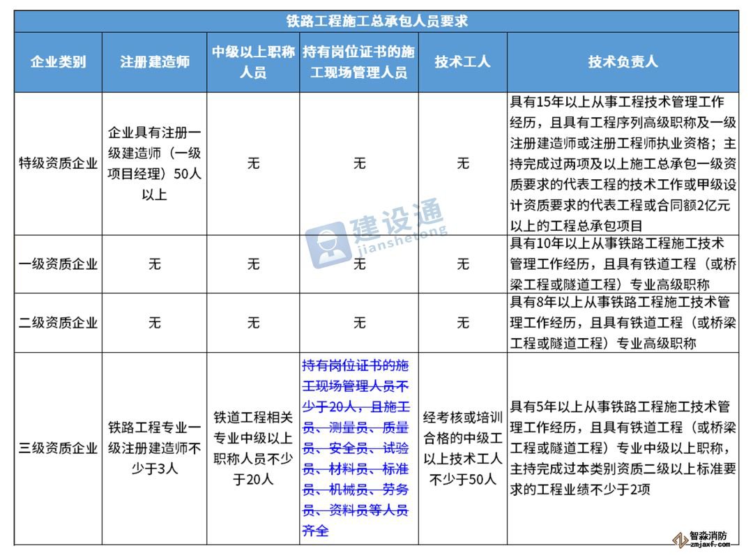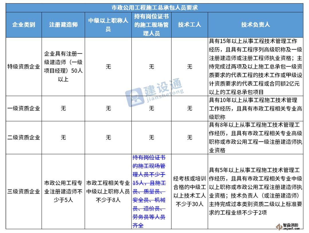 換句話說,并不是所有企業(yè)資質(zhì)都不要求有建造師等企業(yè)人員。施工總承包三級(jí)資質(zhì)企業(yè)對(duì)建造師等人員仍有要求,一級(jí)資質(zhì)、二級(jí)資質(zhì)企業(yè)保留技術(shù)負(fù)責(zé)人這一項(xiàng)要求,特級(jí)資質(zhì)另有規(guī)定。