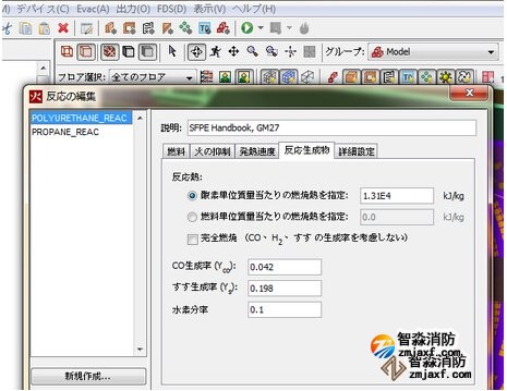 -PyroSim程序中能很方便地輸入已知的材料燃燒反應(yīng)。