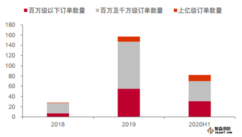 ▲2018-2020H1不同規(guī)模訂單數(shù)量