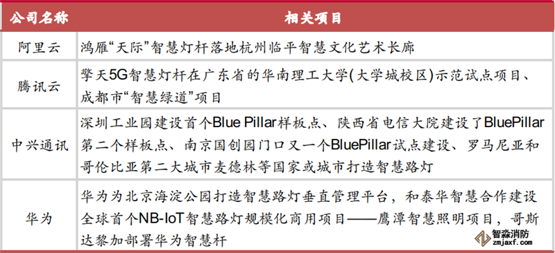 阿里、騰訊、華為、中興通訊等互聯(lián)網(wǎng)、通信巨頭也紛紛入局,結(jié)合自身技術(shù)和平臺優(yōu)勢,已在國內(nèi)外均有智慧燈桿項目落地。