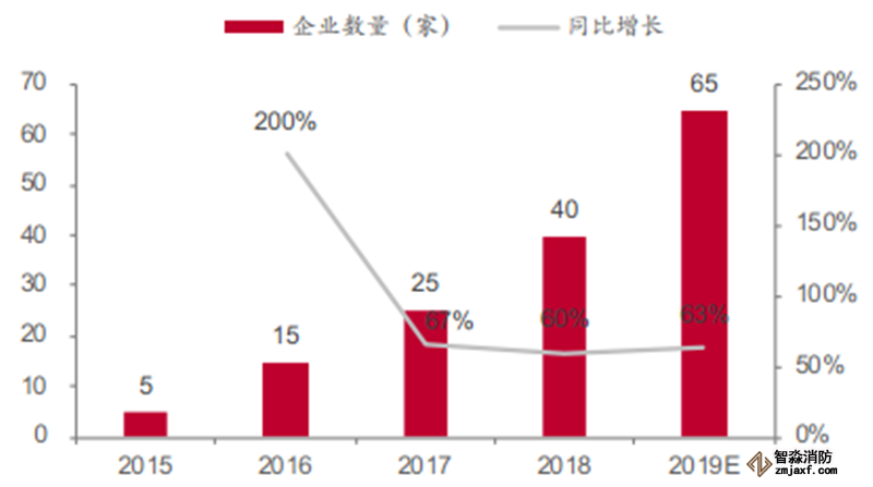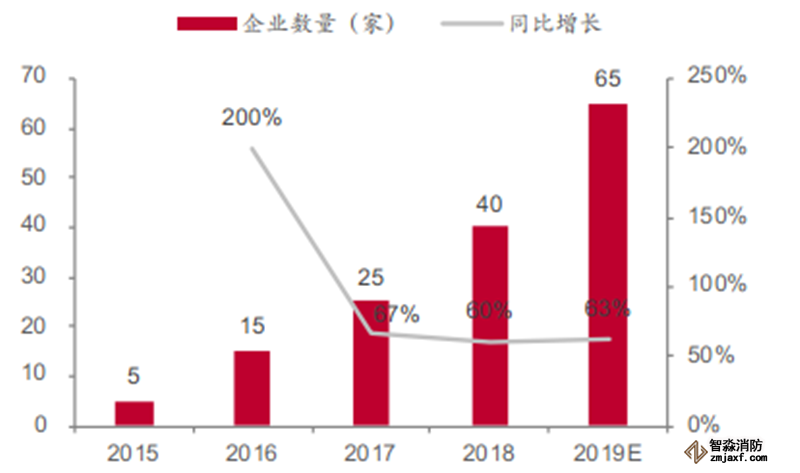 有實際產(chǎn)品、能落地實施做出業(yè)績的智慧燈桿企業(yè)數(shù)量從2015年5家發(fā)展到了如今的40-50家,近三年企業(yè)數(shù)量增長率均在60%以上。