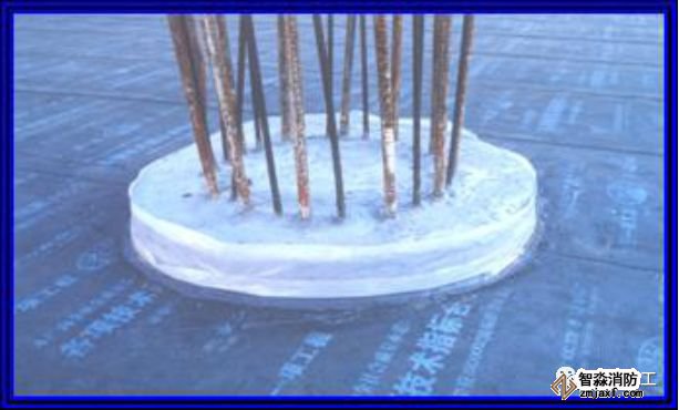 在進(jìn)行大面積防水卷材鋪貼前,應(yīng)先穿好帶有止水環(huán)的設(shè)備管道(止水環(huán)外徑比套管內(nèi)徑小4mm),并固定好,設(shè)備管道與套管之間的縫隙先填塞瀝青麻絲,再填塞聚硫密封膏 ,將防水卷材收口嵌入設(shè)備管道與套管之間的縫隙,再用聚硫密封膏灌實(shí),最后做一層矩形加強(qiáng)層防水卷材。穿墻管與內(nèi)墻角凹凸部位的距離應(yīng)大于250mm,管與管的間距應(yīng)大于300mm。