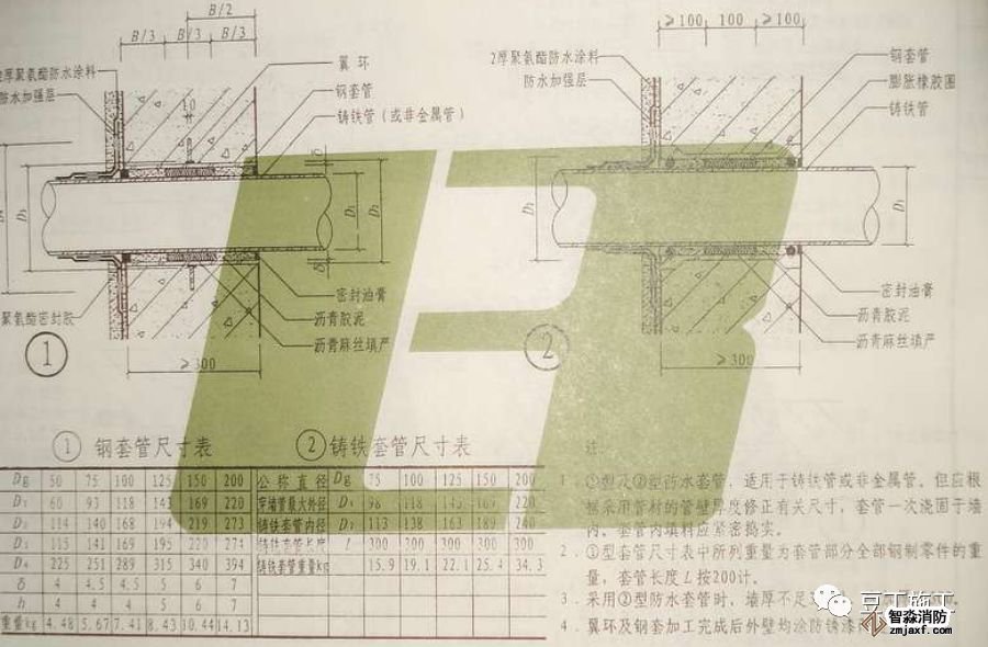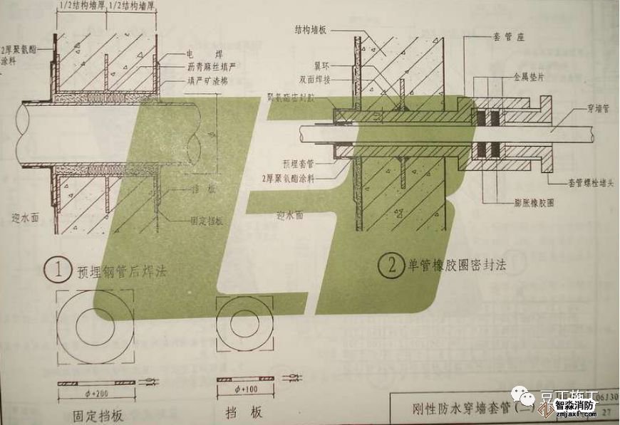 ③穿墻管止水環(huán)與主管或翼環(huán)與套管應(yīng)連續(xù)滿(mǎn)焊,并作防腐處理。