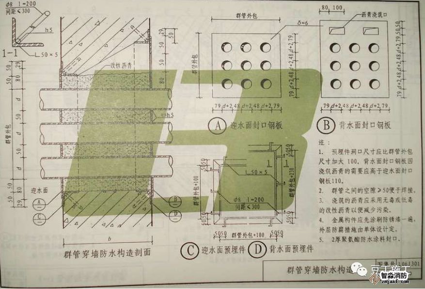 ①變形縫、施工縫、后澆帶、穿墻管道、埋設(shè)件的細(xì)部構(gòu)造做法必須符合設(shè)計(jì)要求。