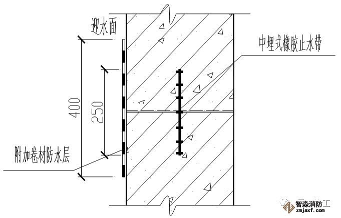 3、迎水面施工縫處增加附加防水層一道寬400cm。
