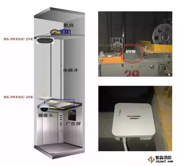 當(dāng)機(jī)房端在井道底部時(shí)攝像機(jī)端需要安裝到轎廂的底部(下圖左),機(jī)房端直接疊高,放支架上即可(下圖右)