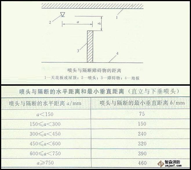 · 當噴頭安裝在不到頂?shù)母魯喔浇鼤r,噴頭與隔斷的水平距離和最小垂直距離應(yīng)符合下表的規(guī)定: