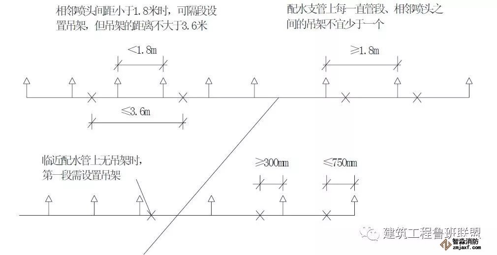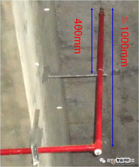 2當噴淋支管高度大于1000mm時,應設橫向加強支架;末端支架與噴頭之間的距離為400mm
