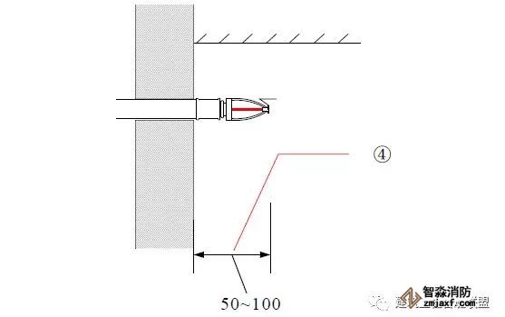 邊墻型噴頭安裝離墻距離為50-100mm