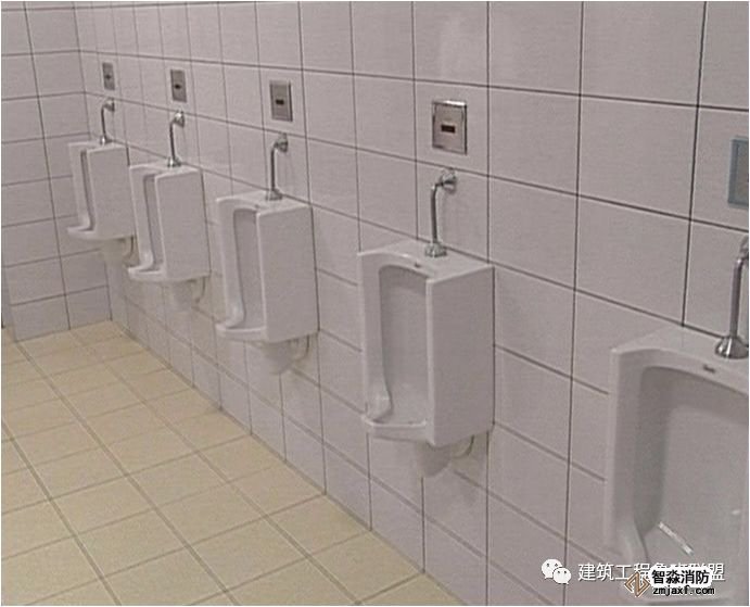小便器、感應器安裝居中,高度一致,地面磚與墻面磚對縫