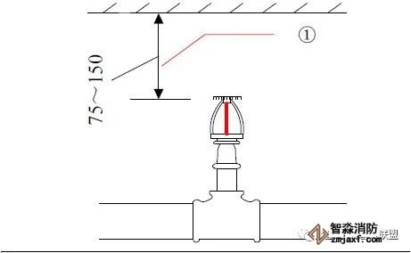 1、直立型噴頭安裝距樓板頂部距離為100mm