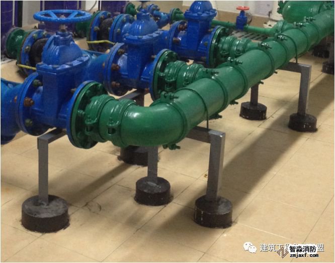 2立式水泵不得采用彈簧減震器;大型立式水泵最好采用穩(wěn)定性好的橡膠減震墊;多臺立式泵可采取組合機組安裝,增加水泵的整體穩(wěn)定性