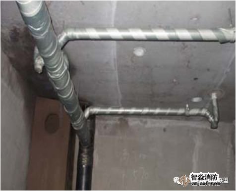 2、有吊頂?shù)南麓剐蛧婎^安裝噴頭根部應與吊頂平齊;為避免定位不準,可在吊頂龍骨標高確定后再安裝下噴支管;下噴頭與三通之間的短管長度不宜超過150mm