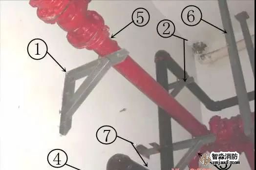 ⑤⑥⑦油漆分色美觀,消防管使用紅色,排污管使用黑色,支吊架使用灰色,且互不污染,但應(yīng)增加管道的標(biāo)色。