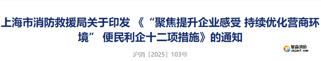 摘要:上海市消防救援局關(guān)于印發(fā)《“聚焦提升企業(yè)感受持續(xù)優(yōu)化營商環(huán)境”便民利企十二項(xiàng)措施》的通知各區(qū)消防救援局,局屬各單位,各相關(guān)單位:《上海市消防救援局“聚焦提升企業(yè)感受持續(xù)優(yōu)化營商環(huán)境”便民利企十二項(xiàng)措施》已經(jīng)局辦公會審議通過,現(xiàn)印發(fā)給你們,請遵照執(zhí)行。此通知。上海市消防救援局2025...