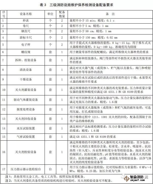 《消防技術(shù)服務(wù)機(jī)構(gòu)設(shè)備配備》 GA1157-2014對(duì)于三級(jí)消防技術(shù)服務(wù)機(jī)構(gòu)的設(shè)備配備要求如下