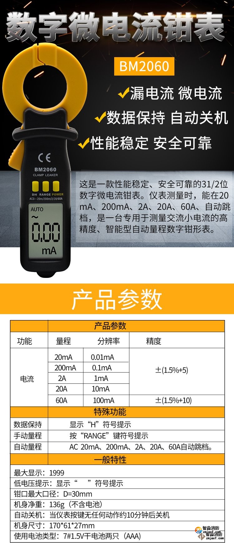 產(chǎn)品簡(jiǎn)介:電電流檢測(cè)儀量程:0A~2A;精度:0.1mA測(cè)量電線是否漏電。最大鉗口張開(kāi) : 30mm20mA/200mA/2A/20A ±1.5%±5,60A±1.5%±8五個(gè)量程自動(dòng)跳檔手動(dòng)量程數(shù)據(jù)保持自動(dòng)關(guān)機(jī)外形尺寸 :170×61×27mm重量: 約148g(含電池