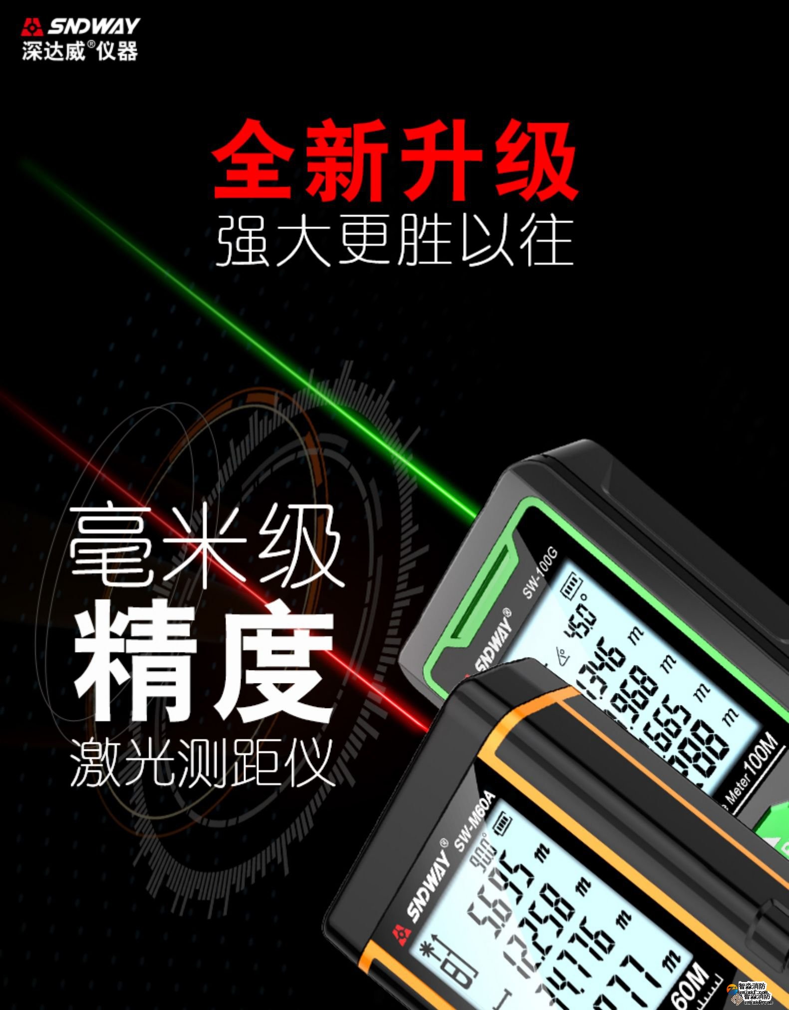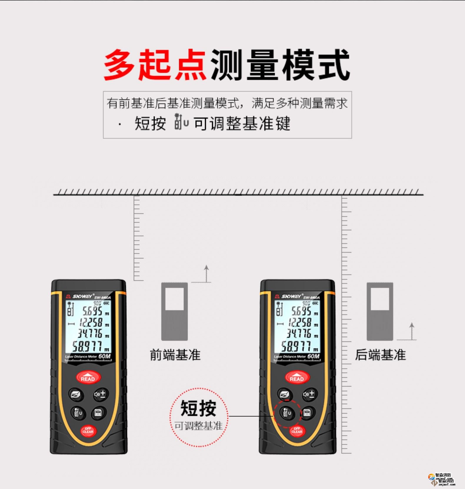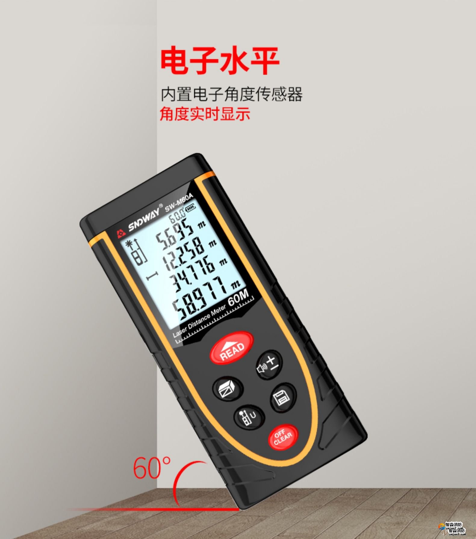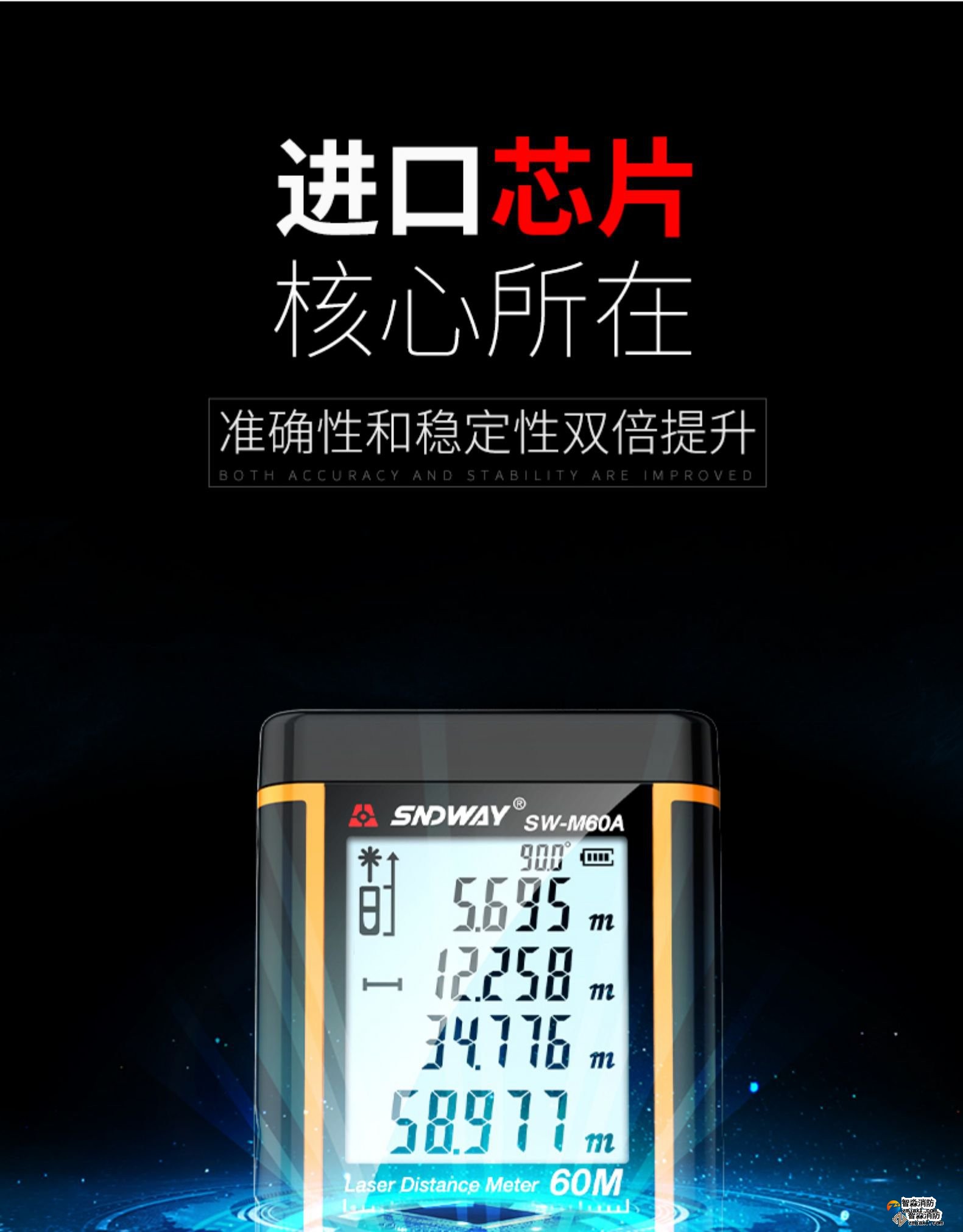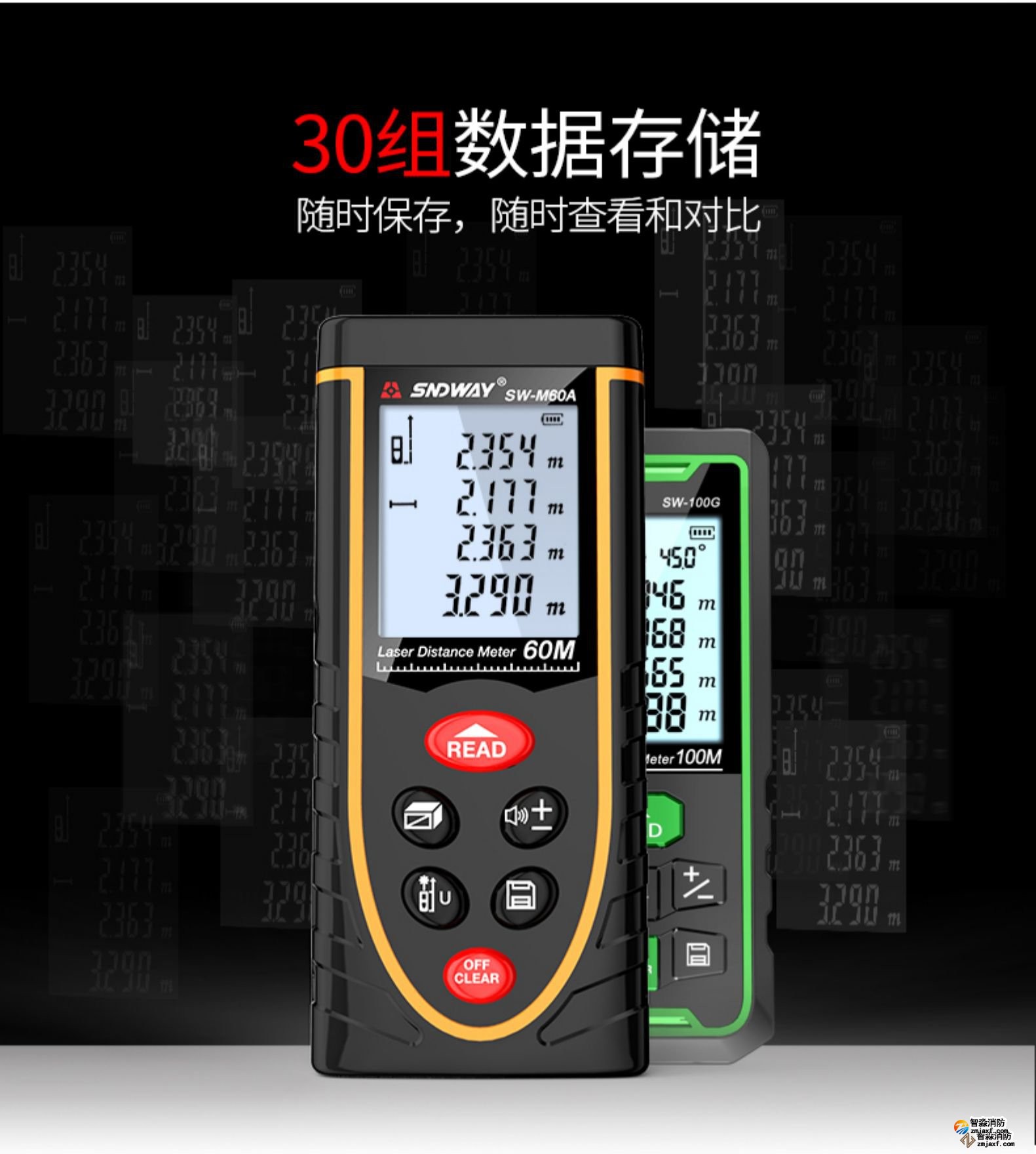 激光測距儀量程不小于50m;精度:3mm測量距離、面積、空間、體積