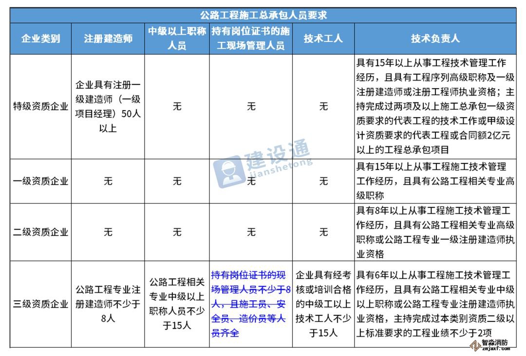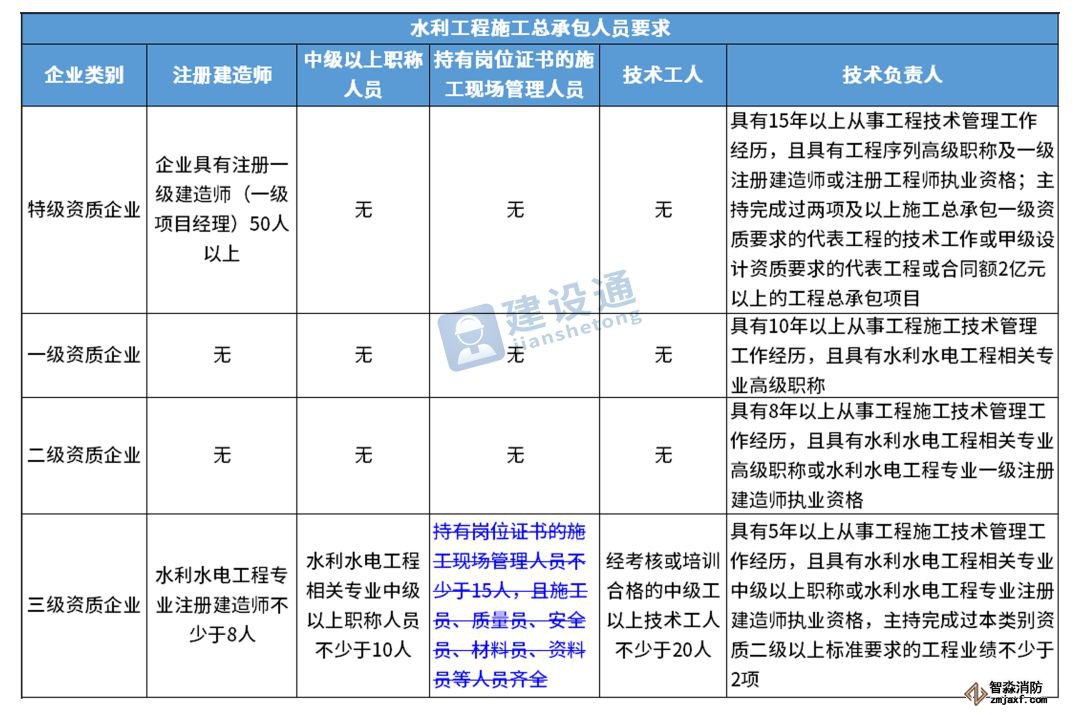 換句話說,并不是所有企業(yè)資質(zhì)都不要求有建造師等企業(yè)人員。施工總承包三級(jí)資質(zhì)企業(yè)對(duì)建造師等人員仍有要求,一級(jí)資質(zhì)、二級(jí)資質(zhì)企業(yè)保留技術(shù)負(fù)責(zé)人這一項(xiàng)要求,特級(jí)資質(zhì)另有規(guī)定。