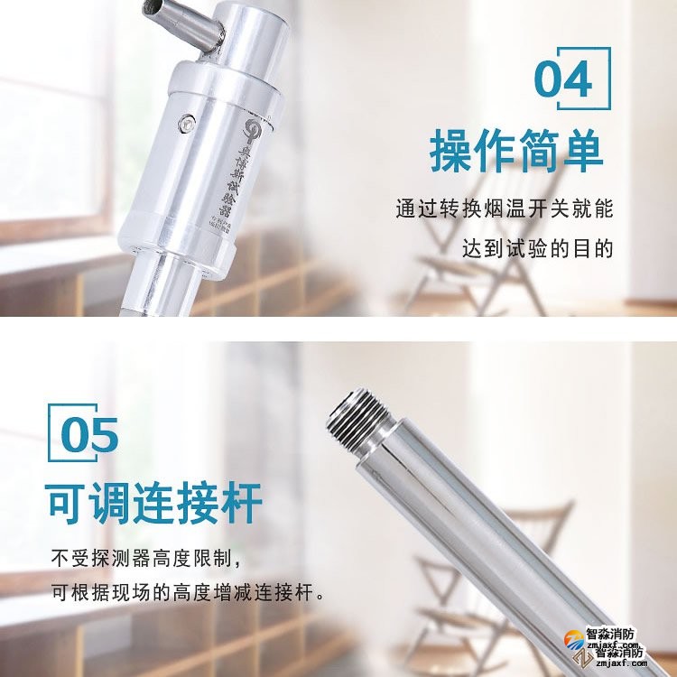 產(chǎn)品簡(jiǎn)介:一體式二合一煙溫試驗(yàn)器是在優(yōu)化感煙探測(cè)器功能試驗(yàn)器及感溫探測(cè)器功能試驗(yàn)器的基礎(chǔ)上開發(fā)設(shè)計(jì)的新煙溫試驗(yàn)器,繼續(xù)保持智淼消防產(chǎn)品不銹鋼設(shè)計(jì),鋁合金外包裝,攜帶方便,組裝簡(jiǎn)單、操作靈活等特點(diǎn)。1、發(fā)煙采用特制的電子霧化發(fā)煙技術(shù),用特制環(huán)保型霧香液,代替原有的棒香發(fā)煙,不產(chǎn)生煙灰和煙油,不對(duì)探測(cè)器造成二次污染
