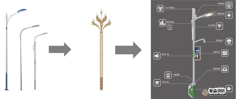 路燈的發(fā)展經(jīng)歷了普通路燈→文化路燈→智慧路燈三個時期,從照明功能逐步發(fā)展為智慧城市入口。