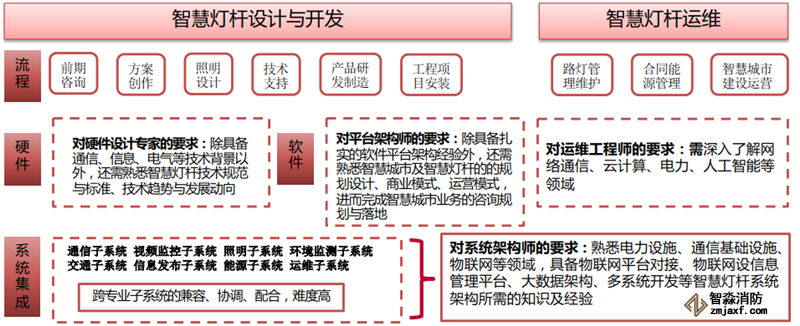 ▲智慧燈桿設(shè)計、開發(fā)與運維全流程中的人才門檻