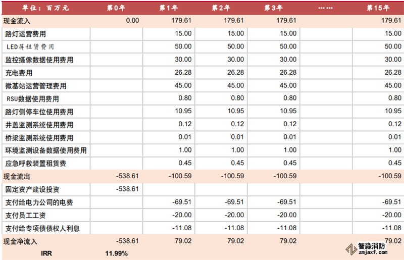 ▲智慧燈桿項目現(xiàn)金流及IRR測算