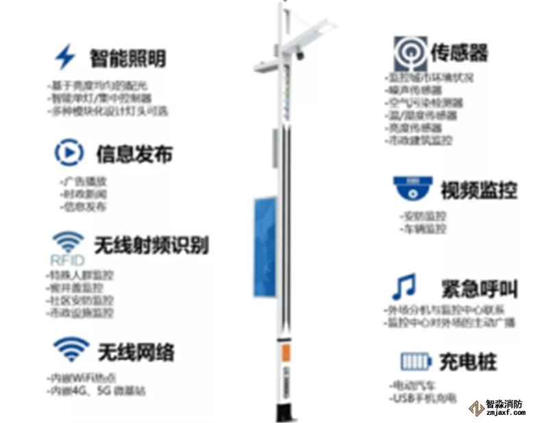 智慧燈桿是多種設(shè)備設(shè)施和技術(shù)的綜合體。
